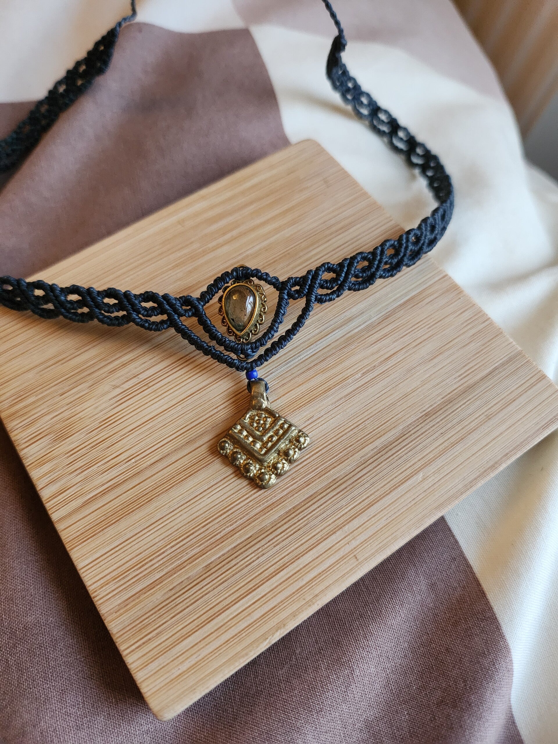 Une collection de collier breloque et tissage en macramé.
