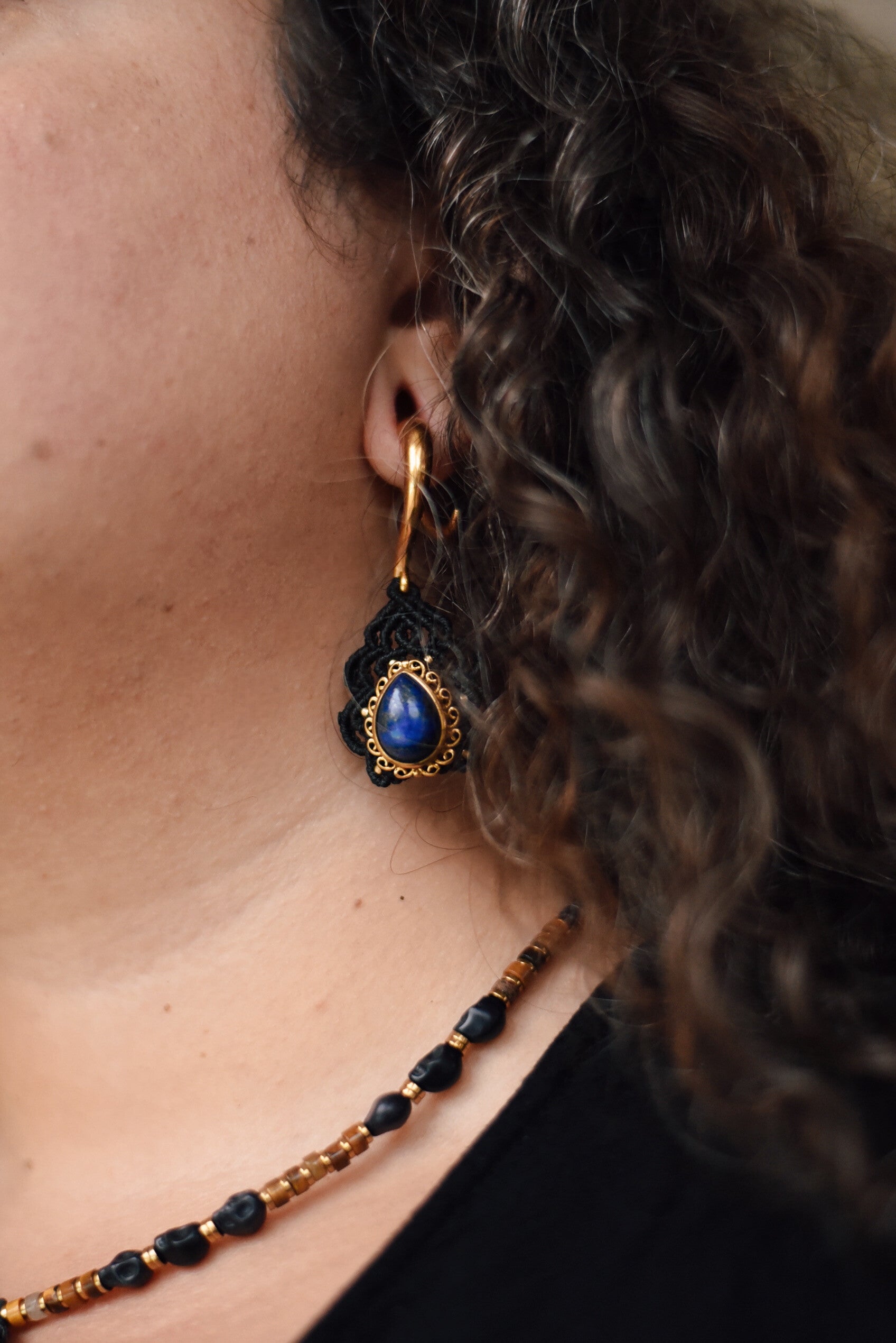 Poids d'oreilles dorées avec des lapis-lazuli